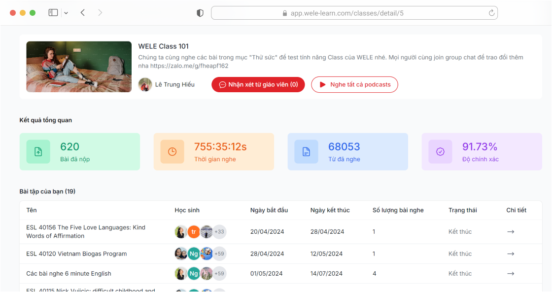WELE có rất nhiều lớp học với các giáo viên giàu kinh nghiệm để giúp bạn cải thiện kỹ năng nghe.