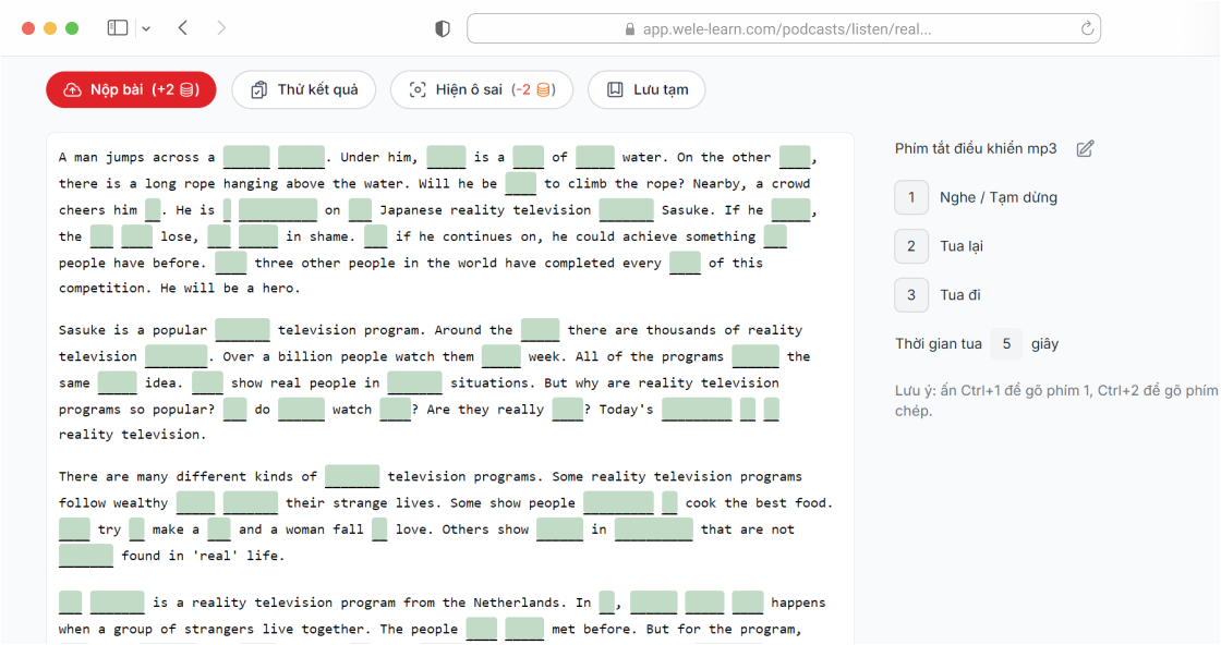 Minh họa về chương trình WELE - luyện nghe tiếng Anh